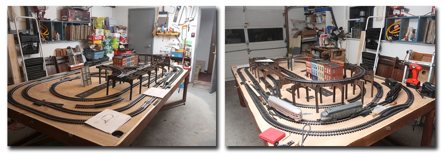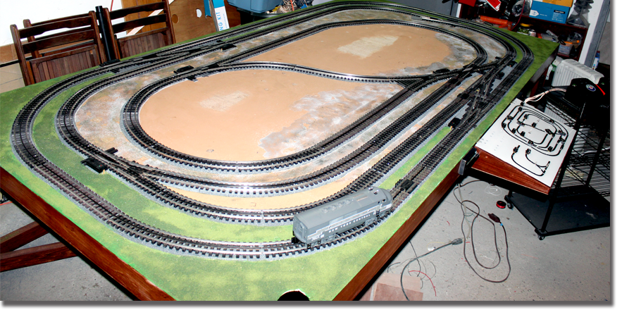 The next step will be to mark all track and elevated track elements on the table top before removing everything and starting the road bed and ground cover process. In addition all the track needs to be tested with several types of rolling stock to check clearances, grades and general operations.