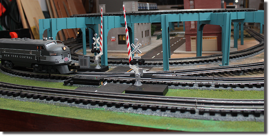 Here are two of the layout from each side of the table. In the bottom image the road is not complete and the crossing signals are not in place... yet.