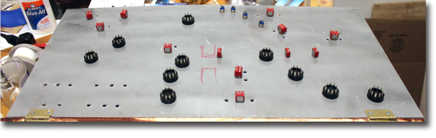The control panel is designed on a computer, printed and placed under a 12" x 24" sheet of Lexan. The track design is then copied with automotive pin stripping material and holes are drilled for the electrical components. Next we remove the printed design and spray paint the back side of the Lexan with a coat of white paint followed by a coat of silver.