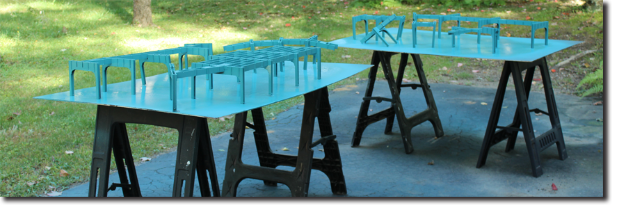 At this point we have the opportunity to refinish the table and leg system. All the damaged and bad finish is striped, new stain and coating is applied: